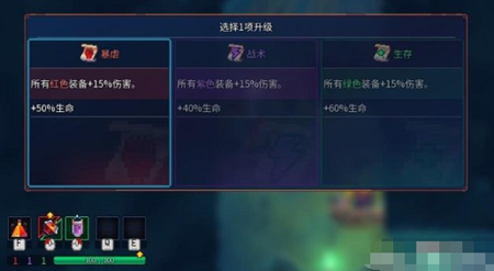 因为加入了大量的动作要素,《重生细胞》的流派并没有《没有杀戮的尖塔奇兵》那样复杂。只是简单粗暴的分为了暴虐、战术、生存三类,对应三种增幅卷轴颜色红紫绿,故又称红流、紫流、绿流。这里介绍下三种流派的特点。