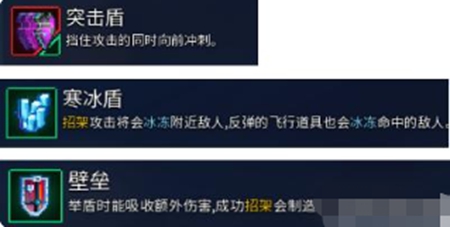 这里要提出一些个人看法:这个游戏的盾牌无非两种,一种是普通的盾牌,一种是突击盾。所谓突击盾,就是在点按举盾时会有一个向前的位移,撞飞沿途的所有东西。剩下的盾牌不管有什么附加效果一律归入“普通盾牌”类。