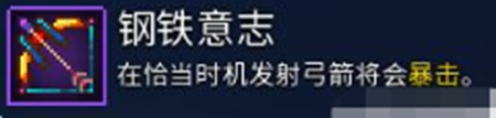 相对于节奏琴的高难度,钢铁意志在可以暴击时会有很明显的声音提示,武器两旁金色的部分也会发亮,判定也很宽松。不过要注意,钢铁意志使用时,按下攻击是拉弓,松手是发射。掌握了这点之后暴击会容易许多。虽说是单体攻击,但是紫流并不缺乏变异“临别赠礼”等补充群伤的手段。