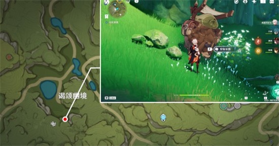 第二只驮兽的位置如下,需要我们去把附近的丘丘人击败: