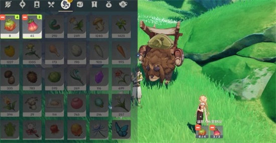 跑掉的两只驮兽虽然已经找回来了,但这里还要把货物也交给他,需要提交4个香辛果,3个墩墩桃。