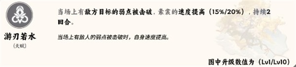 敌方如有被破韧的目标存在,即可提升素裳20%的速度,增加行动频率;我方队友加速击破弱点,即可为素裳加速;