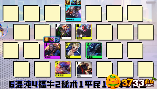2、阵容羁绊:6混沌4福牛2秘术1平民1枪神1怪兽