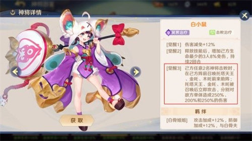 白小鼠作为万金油奶妈在所有阵容中不可或缺,突破+3后一次可奶3名角色,奶量颇丰。最关键的是自带法术“梨花带雨”,增加己方女性角色免伤,且和冥界女性角色都有姐妹羁绊,可增加生命值和防御力,补足了冥阵营的续航性。