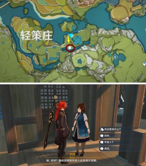 来到轻策庄,就在传送点的下方,可以找到磨坊主“小白”。