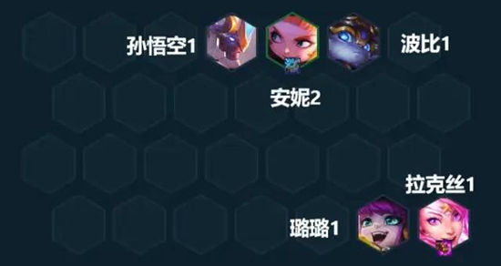 3-5人口阶段我们可以拿波比、猴子、璐璐、安妮、拉克丝的阵容打工,开出3小天才2护卫2灵能使的羁绊,肉装直接给安妮,输出装给拉克丝打工,即可拥有不错的战力。可以说这套阵容是S8法系阵容前期打工的标配。