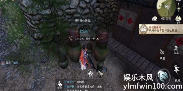 1、玩家需要前往桃溪村,到达如下图所示位置之后需将地上的胭脂捡起。