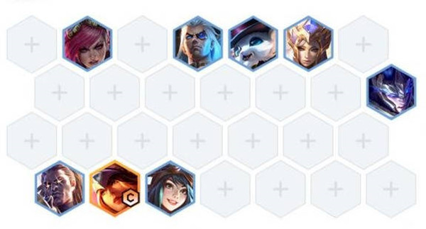 2:羁绊如图所示,名流的格子给希维尔吃就行了,如果是在前两排的话就可以给乌鸦或者蔚吃;