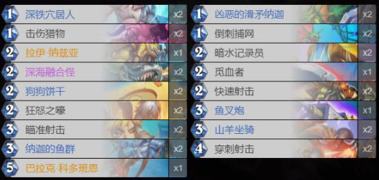 1费:深铁穴居人x2丨凶恶的滑矛纳迦x2丨击伤猎物x2丨倒刺捕网x2