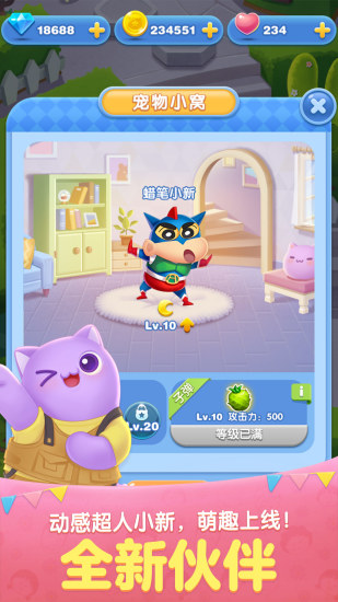 百变造型,总有一只宠物萌化你!更有自带超强技能的月亮宠物,助力你的爱消除之旅!