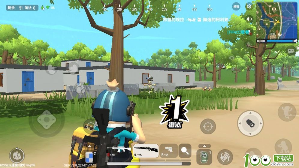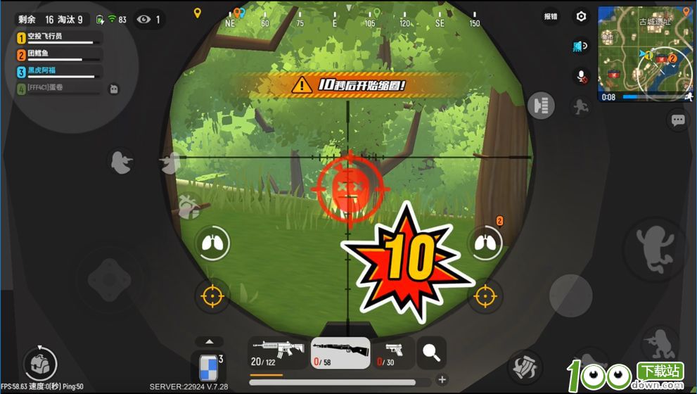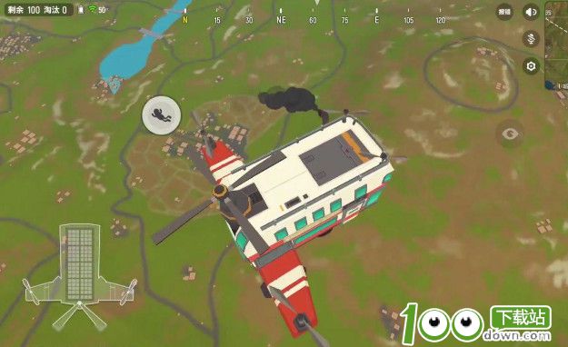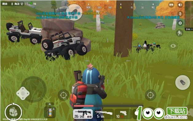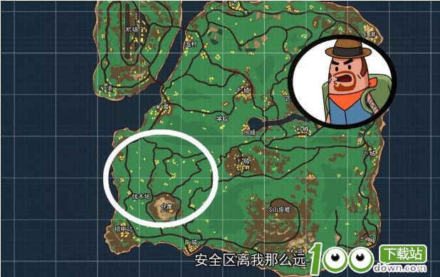 2.64km²的大地图,有城镇,有野点,有树丛,有草丛,每局支持100名玩家对战。