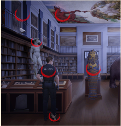1.在夜间探索博物馆关卡中,点击窗外的影子,然后点击摄像头即可看到热图像