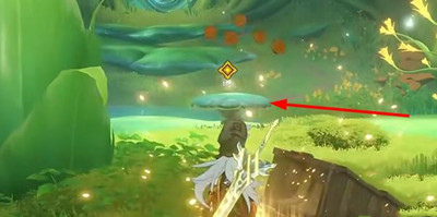 4、在打开宝箱之后会有一个像蘑菇伞的标记物品;
