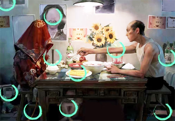 2、左边的柜子上出现了一个人影,左下角还有纸人,墙上的照片透露着诡异,筷子插在米饭里(小编小时候这样可是要被“竹笋炒肉”伺候)。