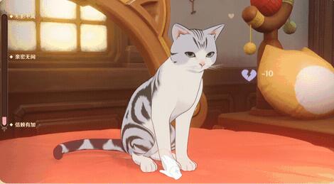 布置完成后,在猫碗里投喂食物,即可和猫猫玩耍。抚摸猫猫喜欢被触摸的部位,友好度将上升,反之不变或下降