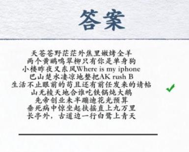 1、这一关是和古诗押韵的玩法,难度不大,多读读就可以连出来