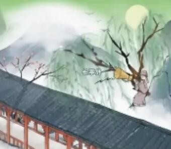 4、拖动左上角进来的路人到柳树处,然后双击柳树叶子;