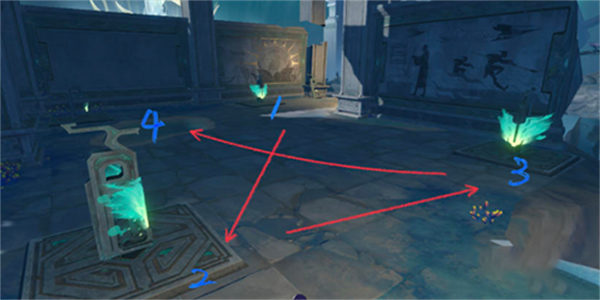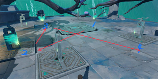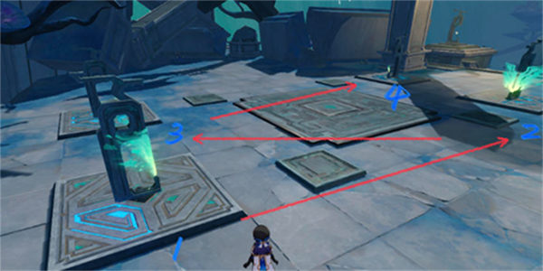 首先,我们来看第一处封印。解除这个封印的关键在于根据脚下的方块亮起的个数来依次点亮。只需要按照1-4的顺序操作,就可以成功解除封印。