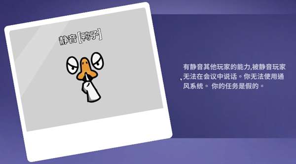 3、静音技能:有静音其他玩家的能力,被静音的玩家无法在会议中说话,你无法使用通风系统,你的任务是假的。