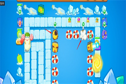 9、觉得怪物快接近萝卜而炮塔不足以消灭它时可以选择使用魔法道具补充。