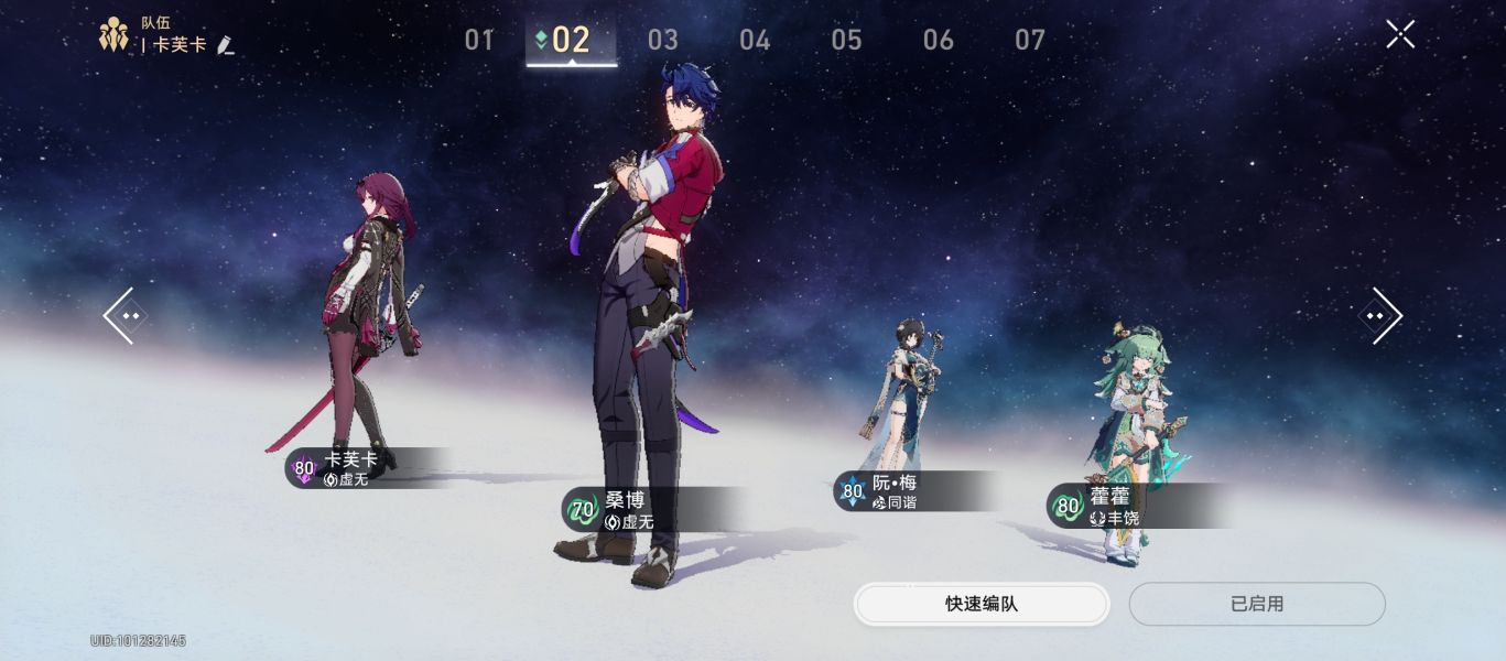 配队方面,桑博搭配卡芙卡没跑的,增伤辅助的话,最优选是阮·梅,其次是艾丝妲,加速拉条拐攻击力也是不错的,最后一个生产辅助,这个队伍的最优选是藿藿,没有的话罗刹和符玄都可以。